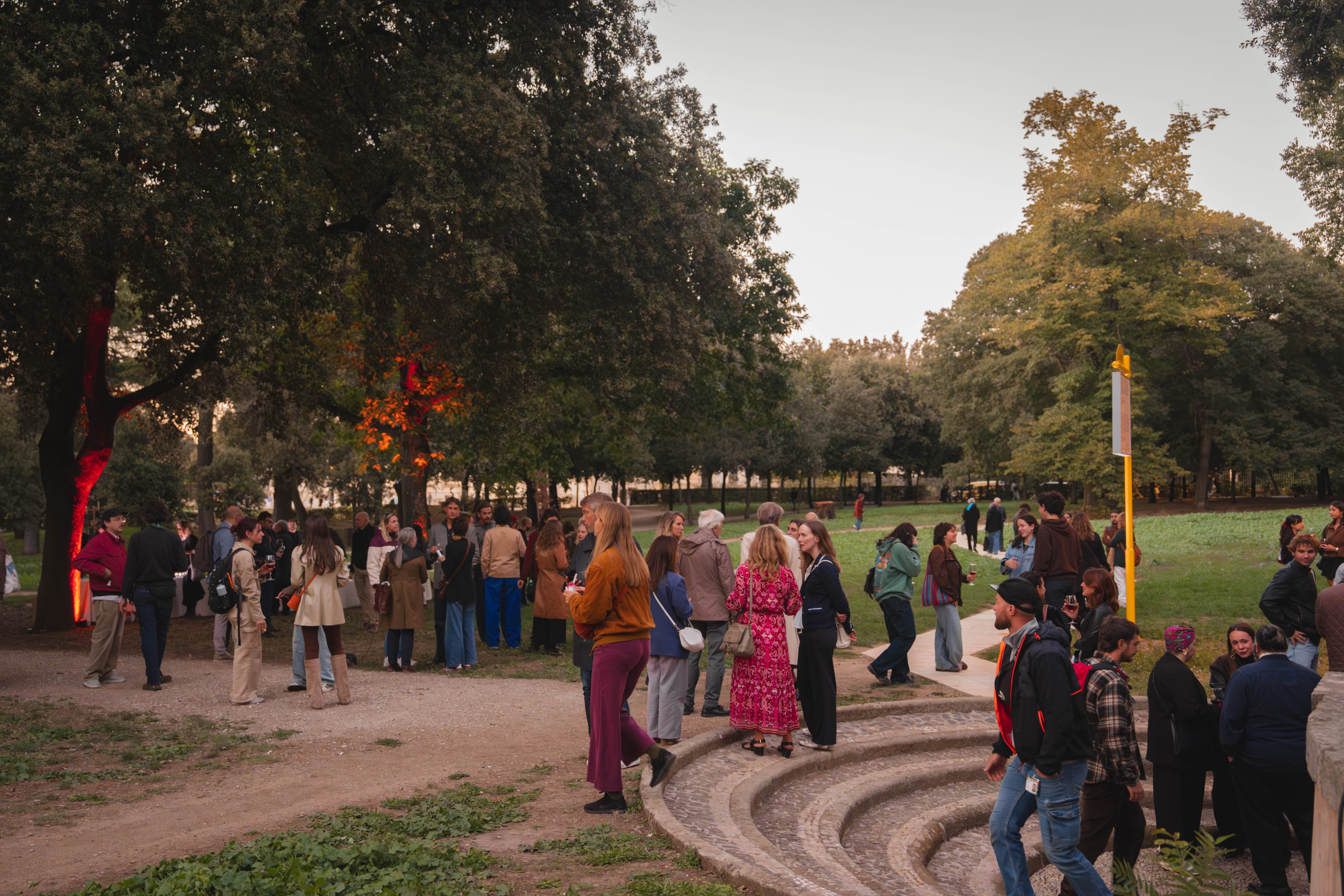Il programma d’arte contemporanea, realizzato da Ghella e promosso da Roma Capitale, Assessorato della Cultura, Sovrintendenza Capitolina ai Beni Culturali, è pensato per dialogare con il restauro della Loggia dei Vini, realizzata tra il 1609 e il 1618 per volere di Scipione Borghese, dove venivano anticamente serviti vini e sorbetti: proprio per questo, ogni inaugurazione di LAVINIA è associata a un gusto di gelato. Per questo quarto appuntamento il gusto è uva fragola, in omaggio all’arrivo dell’autunno.